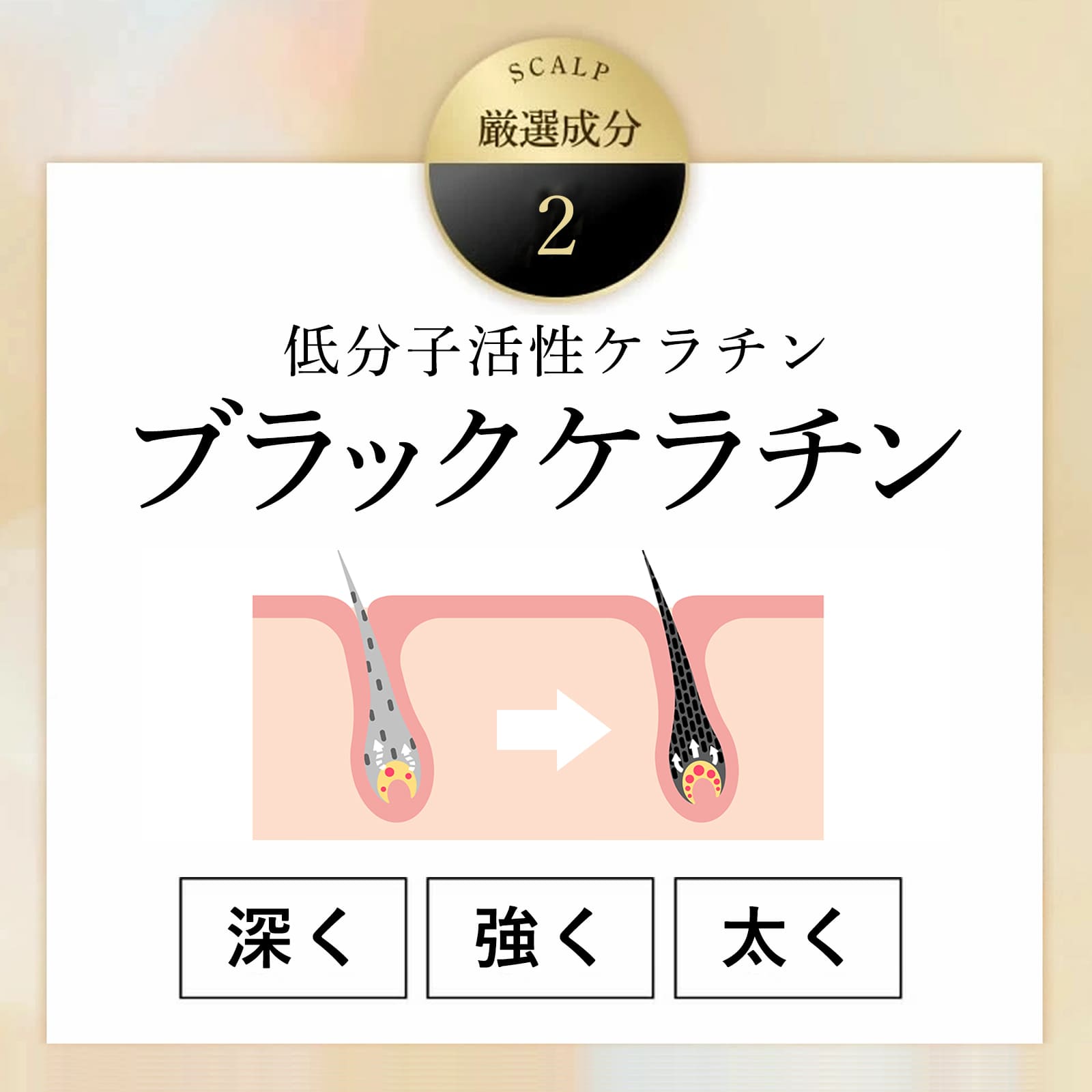- 白髪予防効果の高い、ダークニル、ブラックケラチンが配合されたシャンプー
