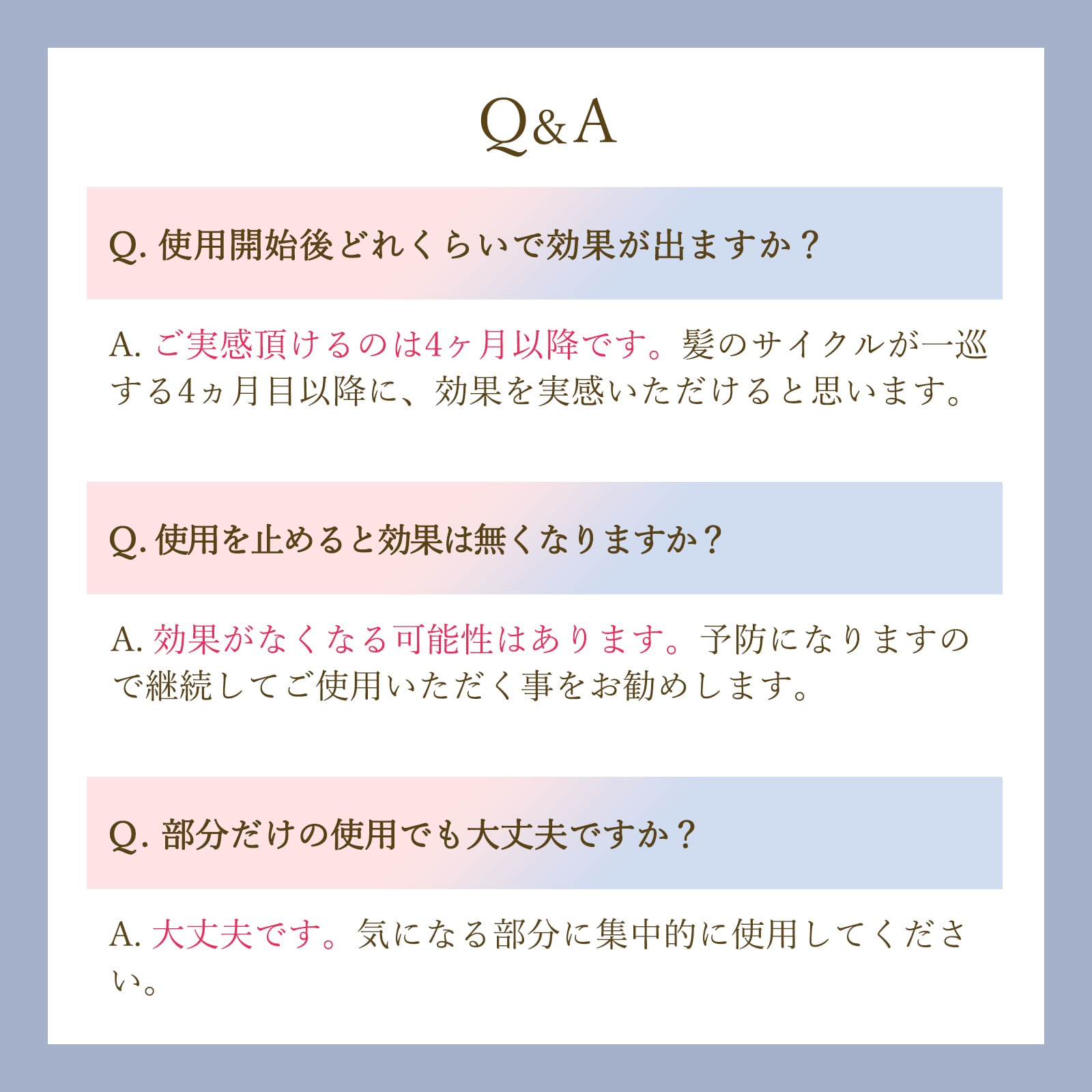 ・「合わない場合は、利用を中止し医師に相談してください」